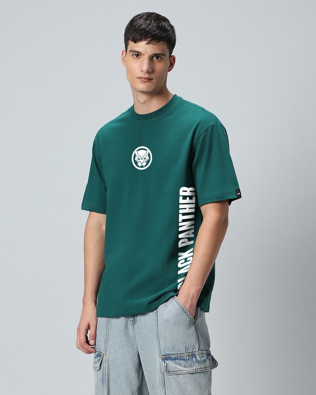 The Men’s Green Wakanda Forever Graphic Printed Oversized T-shirt brings the bold, iconic energy of Wakanda to your wardrobe. It is part of Official Marvel Merchandise. Whether you’re a die-hard fan of Black Panther or simply love bold, empowering designs, this printed t-shirt is a perfect way to showcase your admiration for the iconic superhero and his legacy. This oversized t-shirt is more than just casual wearit’s a tribute to the Black Panther universe.